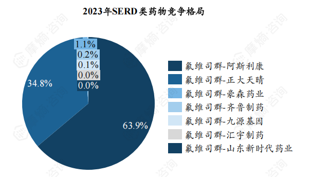 (4)SERD类药物市场竞争格局:2023年氟维司群销售近13亿元,阿斯利康、正大天晴占据90%的市场份额