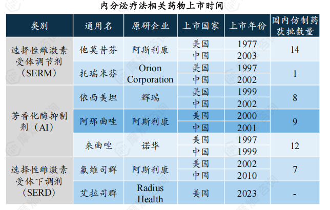SERM类药物的代表药物为他莫昔芬、托瑞米芬。