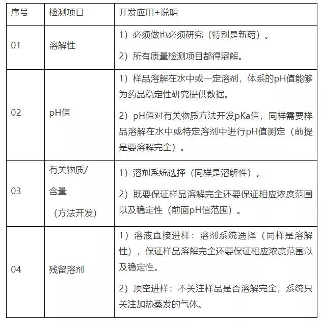 ①药品质量安全放行检测都离不开样品要溶解在特定溶剂系统中;