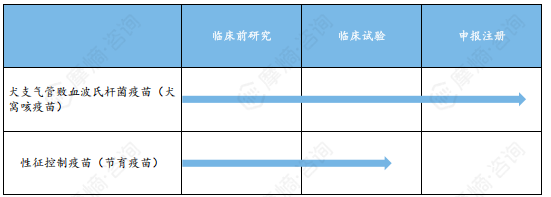 核心研发管线:犬支气管败血波氏杆菌疫苗(犬窝咳疫苗)、性征控制疫苗(节育疫苗)