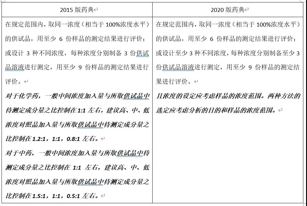 比如说,对于准确度实验一般做法的描述,两版药典的描述对比如下: