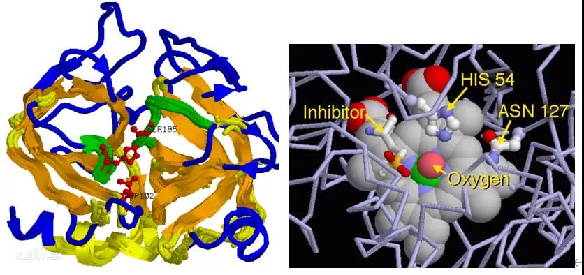 结构特性:生物酶是具有催化功能的蛋白质。像其他蛋白质一样,酶分子由氨基酸长链组成。其中一部分链成螺旋状,一部分成折叠的薄片结构,而这两部分由不折叠的氨基酸链连接起来,而使整个酶分子成为特定的三维结构。