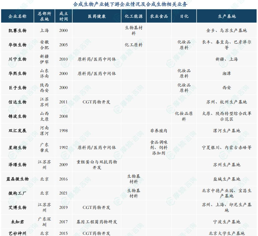 二、中国合成生物产业链下游企业分析