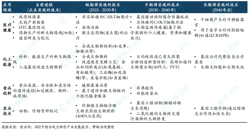 合成生物学各细分领域产品发展应用趋势