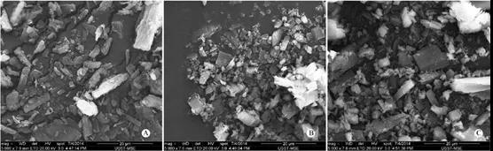 Fig.1 丙氨谷酰胺扫描电镜图(Fig.1A 原料药;Fig.1B 快冻的样品;Fig.1C经过退火的样品)