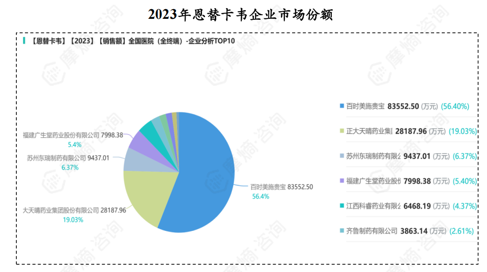 从企业竞争格局看,原研企业百时美施贵宝2023年市场份额为56.4%,保持绝对领先,排名第二的企业为正大天晴,2023年占据19.03%的市场份额,苏州东瑞制药、福建广生堂药业等其余厂家市场份额较小。