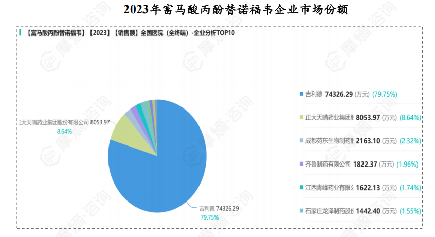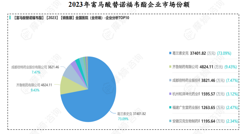 该品种原研企业为吉利德,而在中国的商业化许可已授予葛兰素史克,据统计,2023年GSK市场份额约73%。