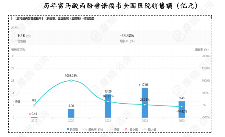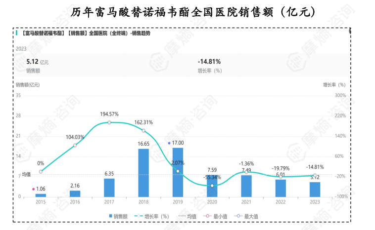 (2) 富马酸替诺福韦酯:医院端销售峰值17亿元