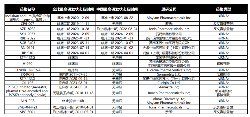 注:临床阶段靶向PCSK9的新技术产品