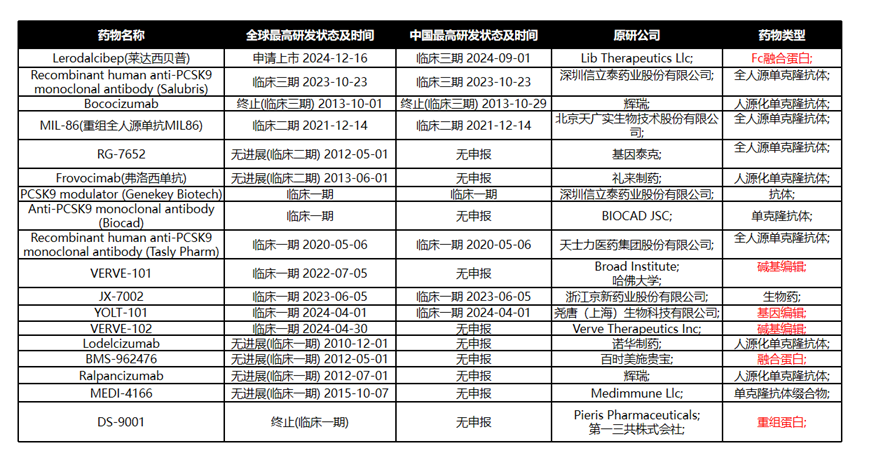 注:靶向PCSK9的抗体药物(I-III期在研)