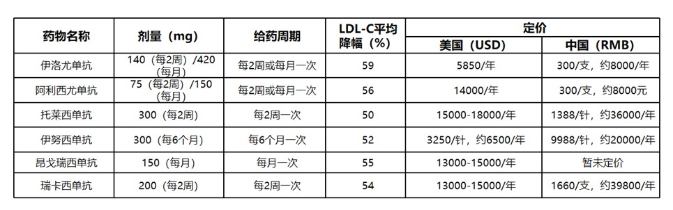 注:六款PCSK9单抗的基本情况与定价