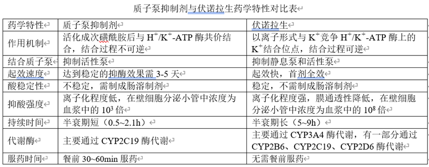 伏诺拉生是新一类胃酸分泌抑制剂,通过竞争性抑制K+对质子泵的结合作用,提前终止胃酸的分泌,起效迅速,其作用强劲、持久,且无需酸激活。大量的临床前药理毒理评价表明本品具有良好的药效和较高的安全性。在临床试验中,相对于PPIs,本品的疗效更佳,而安全性相似。