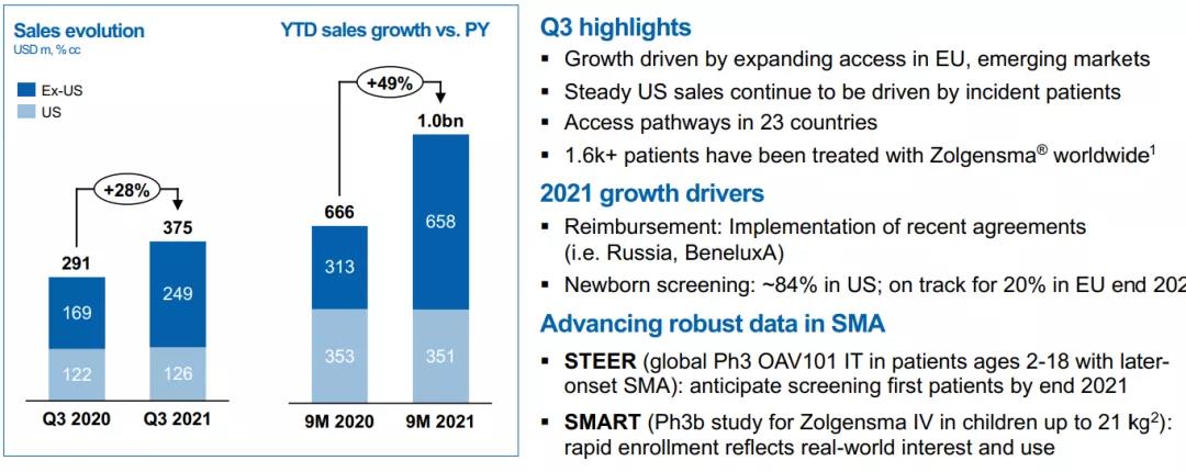 2021年,诺华第三季报显示,本品单季度业绩为3.75亿美元(其中美国市场1.26亿美元);前三季度合计10.09亿美元(其中美国市场3.51亿美元);已经成为重磅炸弹药物。
