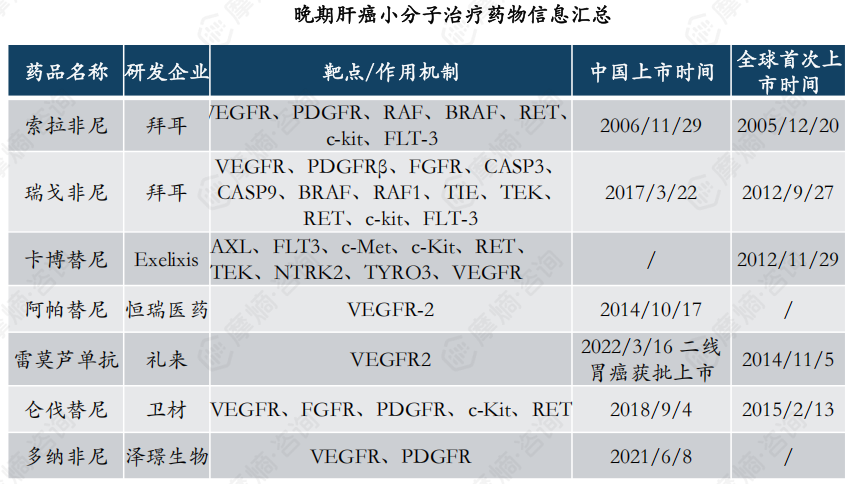 1. 肝癌小分子靶向药:已上市多年,尚无突破性药物补充