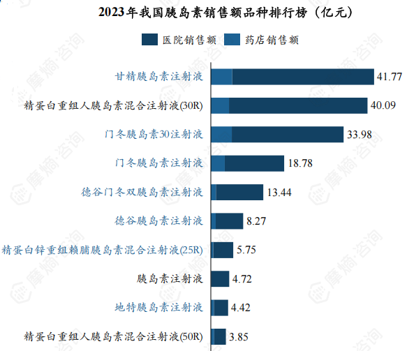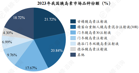在胰岛素品种方面,甘精胰岛素作为第三代基础胰岛素,在市场上表现突出。2023年,其全国销售额约为41.77亿元,市场份额约为22%,成为我国销售额排名第一的胰岛素品种。