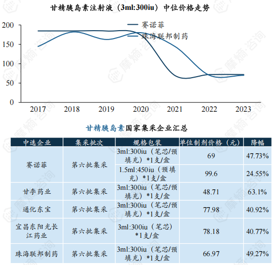 甘精胰岛素:专项集采五家企业中标,国产产品院内销售额/量小幅提升