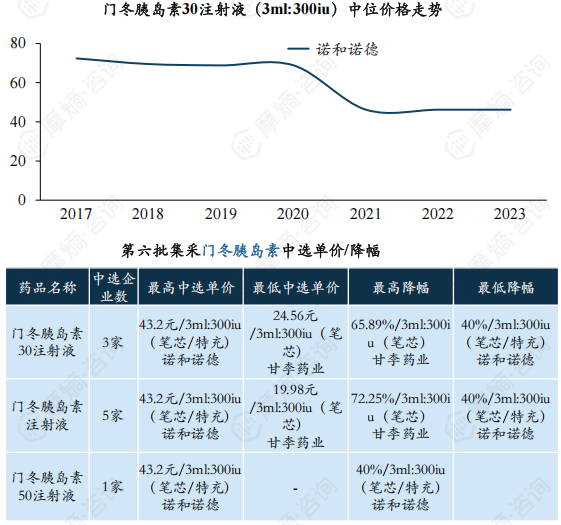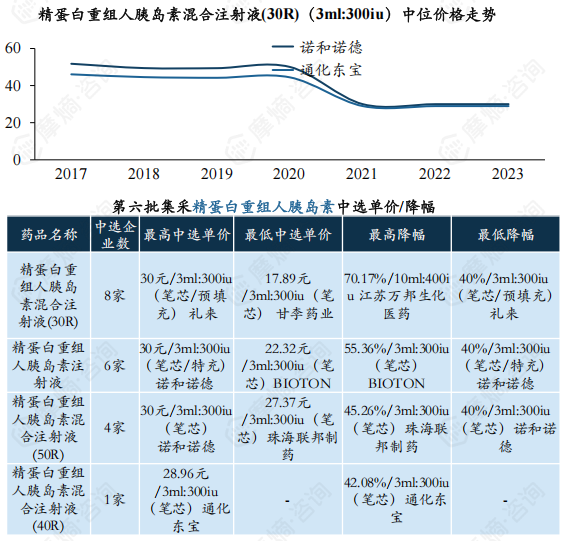 门冬胰岛素:第六批集采平均降幅约50.24%,预混30产品采购量/金额位居第二