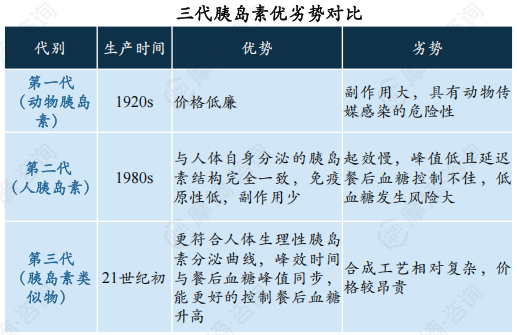 第二代、第三代胰岛素在我国市场占据主流地位。