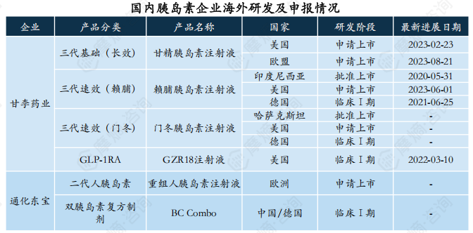 出海正成为全行业共识,甘李药业、通化东宝两家企业率先开启胰岛素出海,多款产品海外研发及申报顺利推进,未来更多国产胰岛素产品将登上国际舞台,参与全球化竞争。