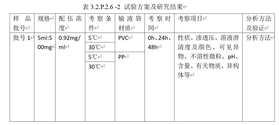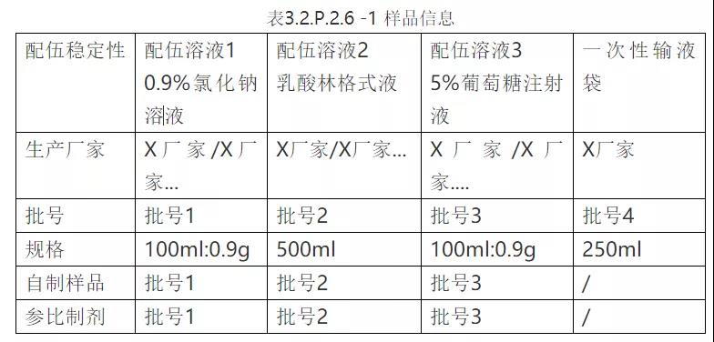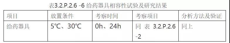 ①临床配伍相容性研究属于模块三(3.2.P.1~3.2.P.3)中“3.2.P.2 产品开发”部分,根据作者提交CDE的资料,该部分内容放在了“3.2.P.2.6 相容性”项下。这部分应充分提供制剂与复溶稀释剂或(和)给药装置的相容性情况,从而为产品说明用法提供适当的数据支撑。