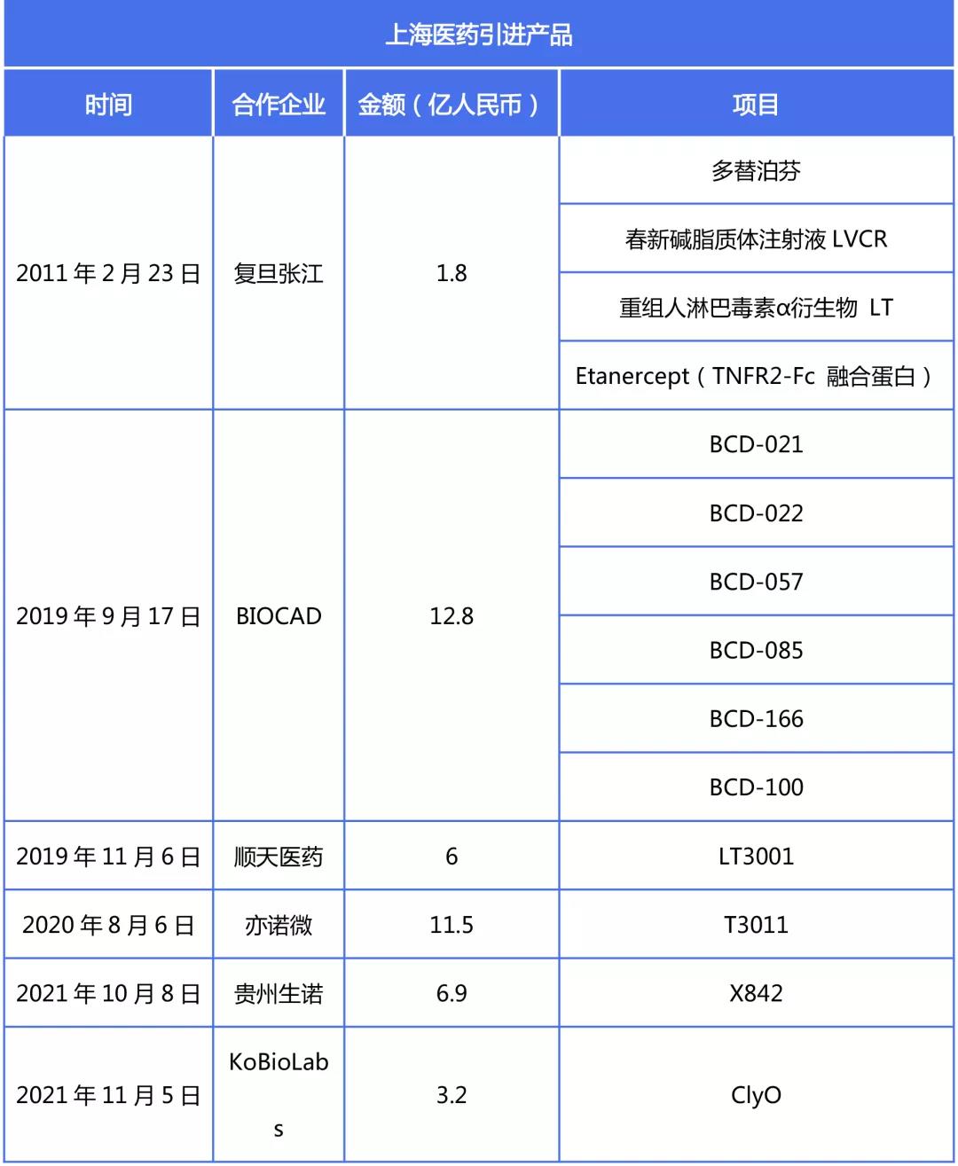 - 上海医药与俄罗斯BIOCAD公司合资成立的上药博康引入的首批6款生物药产品已于今年取得了诸多进展,全人抗PD-1单抗“Prolgolimab注射液”,于2021年2月获国家药监局批准开展Ⅲ期临床试验。