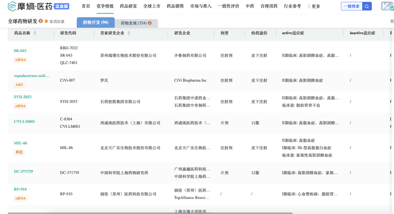 动脉粥样硬化性心血管疾病(ASCVD)是心血管系统疾病中最常见的疾病,也是危害人类健康的常见病,而血脂异常尤其是LDL-C水平升高是导致ASCVD发生、发展的关键因素。研究发现,PCSK9(前蛋白转化酶枯草溶菌素 9)抑制剂能促进肝脏清除LDL-C,从而降低LDL-C水平。目前全球范围内,PCSK9抑制剂包括单抗、ASO、siRNA、口服环肽、小分子等候选药物在研。