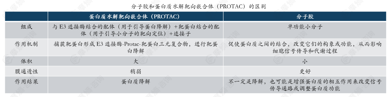 近年小分子新药研发中还有两个特殊的小分子类型:分子胶和蛋白质水解靶向嵌合体(PROTAC)。