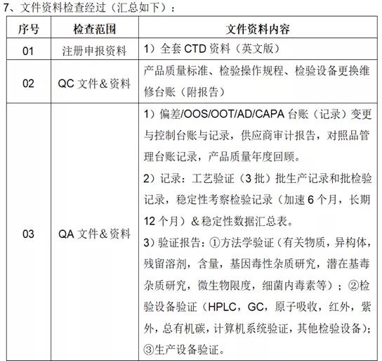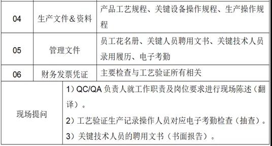 8)动态检查:①根据生产工艺和周期提前准备3批生产的物料(可以和审计官进行沟通);②往往3批同时进行现场生产审计官是要全部跟踪的,现场生产取样、质量检测结果是否合格。③检查生产记录、检验记录,核对工艺参数、质量参数是否与注册资料一致,3批质量是否一致(工艺是否成熟是否重现、质量重现性)。
