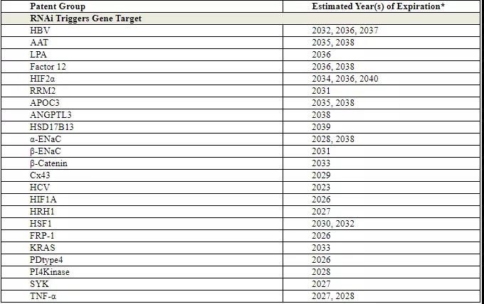截至2020年9月,Arrowhead Pharmaceuticals拥有398项专利,其中包括250项RNAitrigger分子的专利、35项靶点基团或靶点化合物的专利以及5项流体动力学基因递送系统专利,这些专利是公司的核心资产的一部分。