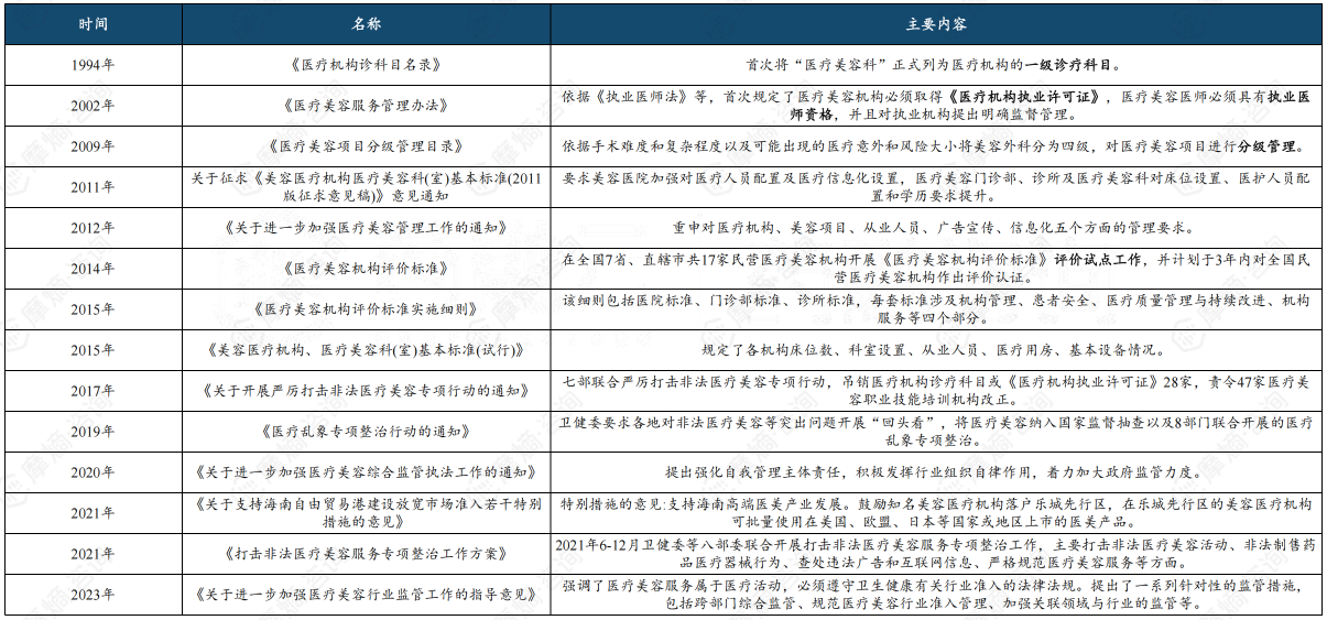 5. 行业政策监管不断出台并落实,规范医美行业良性发展