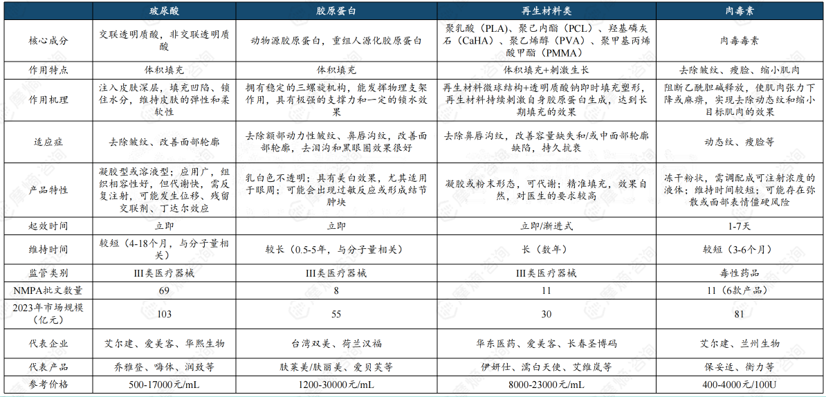 4. 医美注射材料四大品类对比