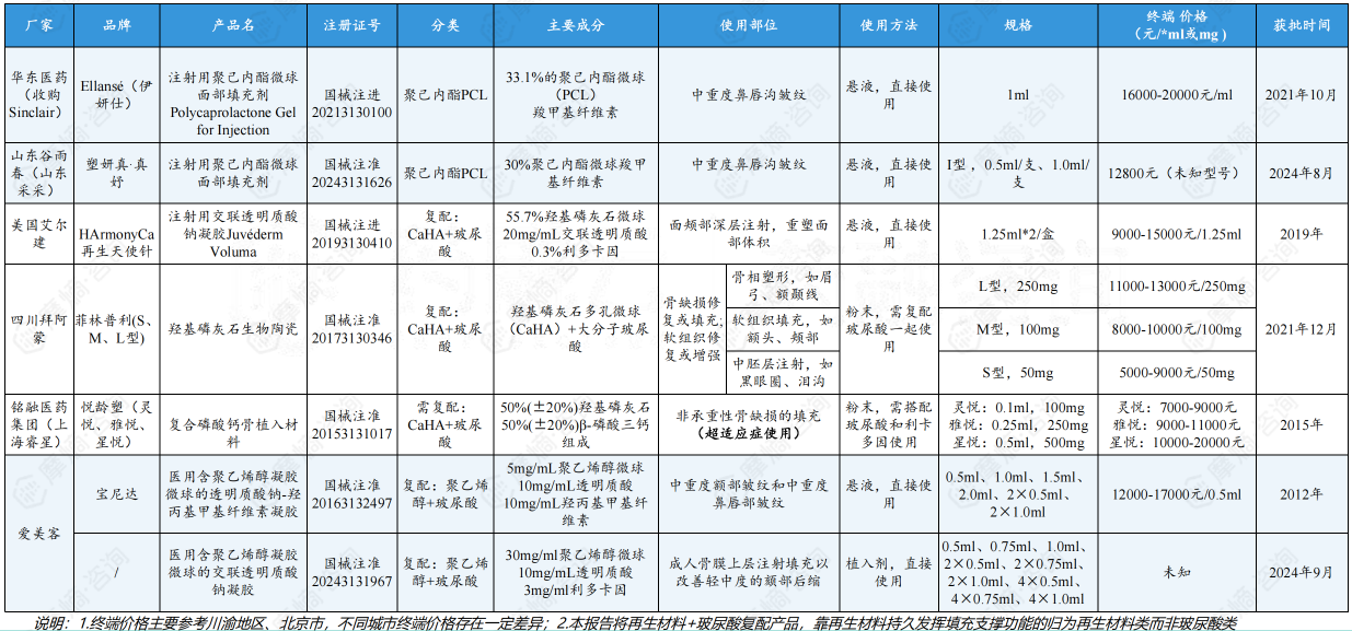 聚乙烯醇是国内最早用于医美注射的再生材料,但其在人体内代谢的时间非常长,注射效果不理想后难以处理;聚乳酸、聚己内酯因其分子量可控和生物可降解的特性更受市场青睐;羟基磷灰石也是较受欢迎的填充剂,但部分产品并未获批医美注射适应症,属于超适应症使用。