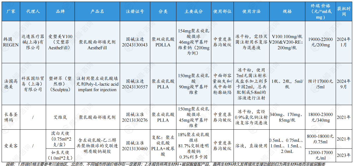 - 长期更经济:再生材料价格跟胶原蛋白相差不大,比玻尿酸贵一些。但由于其长效效果,长期来看可能更具成本效益。