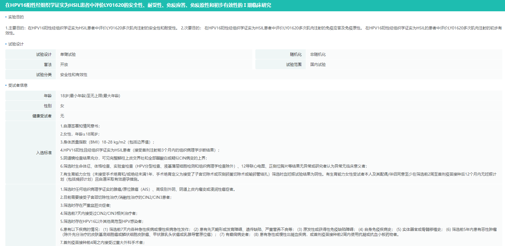 LY01620临床试验(CTR20243545)详情