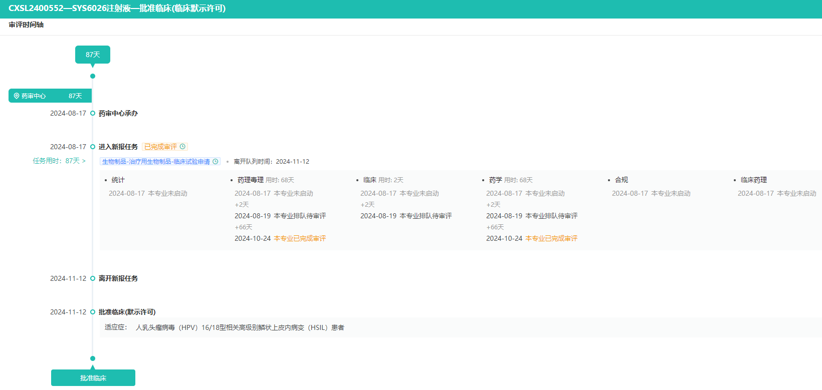SYS6026注射液审评时间轴-获批临床