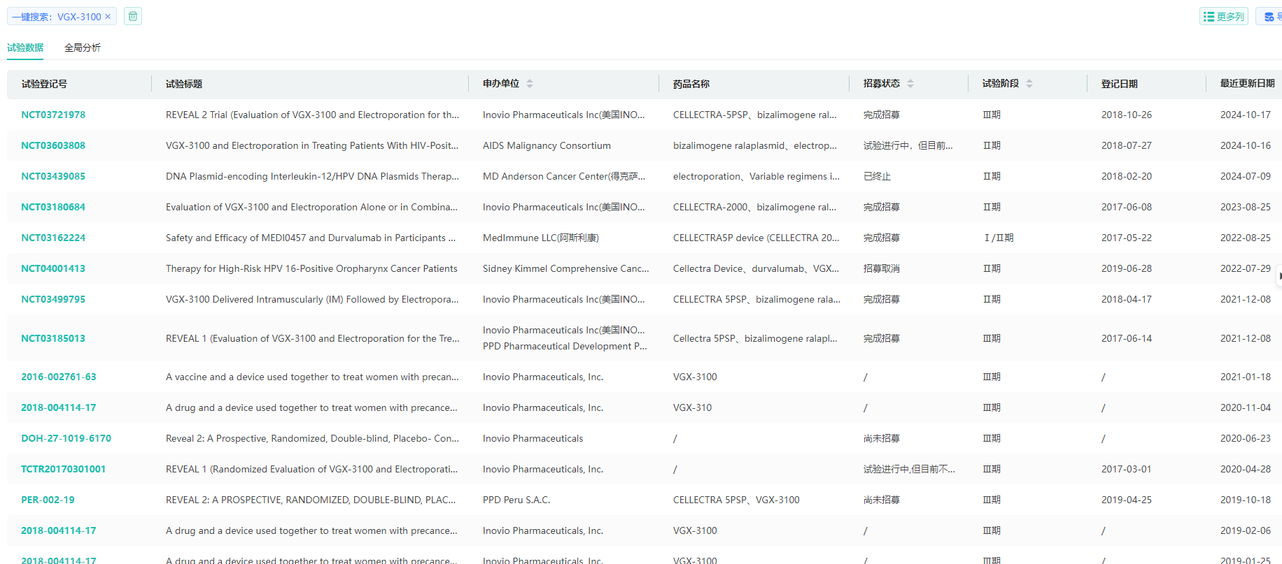 VGX-3100全球临床试验信息查询