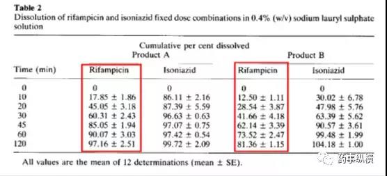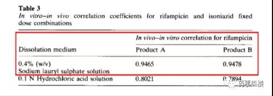 利福平与异烟肼复方制剂在进行溶出曲线测定时发现利福平在0.1N盐酸中不稳定,发生降解。由于利福平在水中不溶,因此采用了0.4%SDS溶液进行了研究,结果表明在整个分析检测过程中无降解。而且,0.4%SDS溶液的体内外相关性很好。