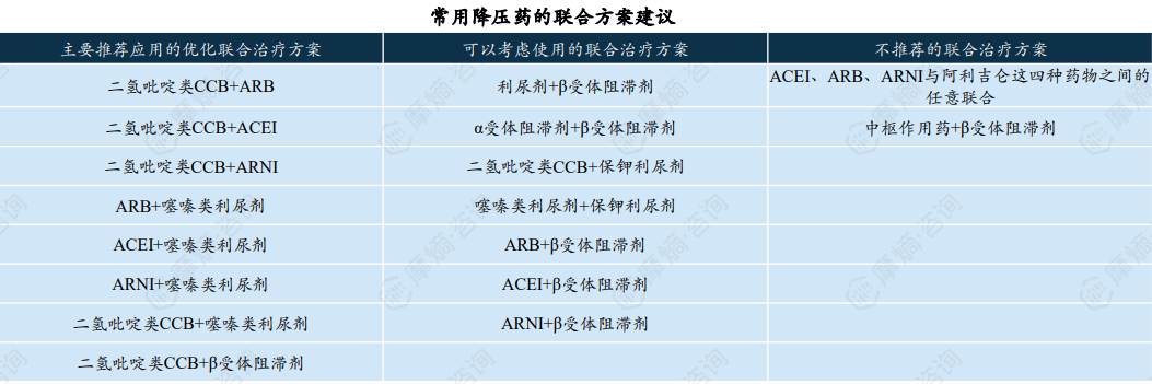 为了达到目标血压水平,大部分高血压患者都需要使用2种或2种以上降压药,两药联合时,降压作用机制应具有互补性,具有相加的降压作用,和相互抵消或减轻不良反应。