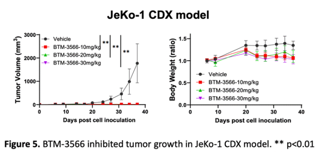 而且,BTM-3566不局限于血液瘤,在实体瘤如绒毛膜癌和食管癌中也有一定的肿瘤抑制效果,尽管效果不如血液瘤,但已经为实体瘤治疗提供了新的思路。