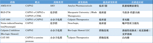 目前针对CAPN2靶点的在研药物仅6款,竞争相对不激烈,这也为AMX0114的发展提供了广阔空间。