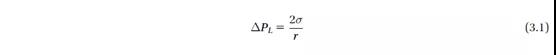 在乳液中,当油相和水相混合时,会形成两层液体,两层液体被一薄界面层隔开,该界面层具有一定的界面力,使两相之间的接触面积最小。要形成乳液,就需要向体系中注入一些能量来改变这一界面层的位置。当系统获得足够的能量时,界面层发生断裂,两相之间的界面面积增大。然而,当连续相的油滴在搅拌下形成时,它们不断地运动、碰撞,并可能相互结合。一段时间后,形成较大的液滴,由于液滴的结合,两个相分离。使用乳化剂是必要的,以避免液滴合并。界面力的特征是拉普拉斯压力(ΔPL),即液滴内外穿过油水界面的压力差。它可以用下面的方程(3.1)表示。其中,σ为两相之间的界面张力,r为液滴半径。由上式可知,液滴的尺寸取决于界面张力。由式(3.1)可知,界面张力越高,形成的液滴越大。拉普拉斯方程表明,在乳液形成过程中,液滴的变形与界面内外面的压力梯度相反。乳化形成所需的压力梯度主要由搅拌提供,要产生小液滴的乳化,需要非常强烈的搅拌/均化。因此,需要一个强烈的均质压力来克服界面张力,形成更小尺寸的乳液滴。当界面张力与拉氏压力达到平衡时,液滴不会发生断裂,且界面张力和液滴尺寸减小最大。