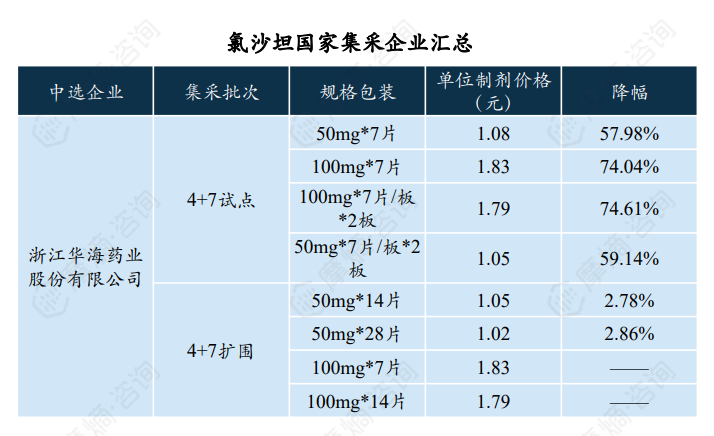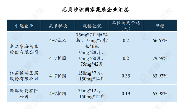 2. 纳入首批集采,中选企业共三家,华海药业最高降幅约79.59%