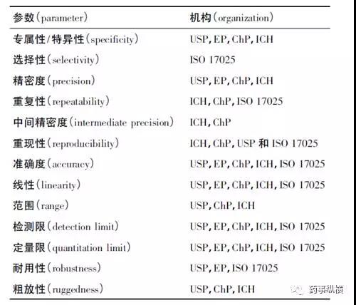 不同国际组织和药典要求的方法学验证参数