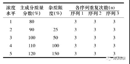 如果采用新的研究思路,会要求应用新的实验设计。如文献《基于Q2(R1)理念的药品质量分析方法验证新概念》报道,在进行线性试验时,可根据ICH要求, 配制5种浓度水平来评估,根据eNvoal的要求, 至少需要独立的3个序列, 且每个序列至少重复3次,实验设计如下表所示。
