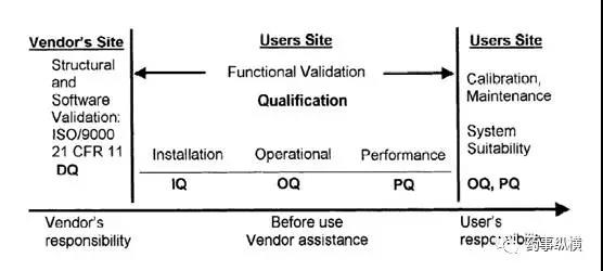 4、开展预验证试验和研究。在研究开始时分析仪器应经过DQ、IQ、OQ、PQ的确认,如对于HPLC,UV、溶出度仪进行校验,这是方法学验证的基础(如下图所示)。每次分析前进行系统适用性试验,保证系统性能符合要求。