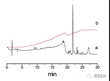要考察对照品溶液、供试品溶液、溶剂、流动相等的稳定性情况,一般要求至少24h稳定,找到敏感因素,并控制这些因素,如温度、光等。确定系统适用性的评价方式和指标,如采用峰鉴别对照品溶液、破坏溶液、还是对照品混合溶液?采用分离度、相对保留时间、主峰保留时间、理论板数、拖尾因子,还是RSD进行评价?要通过专属性、降解试验(或混合降解溶液)等评价色谱柱,确定厂家、品牌、固定相种类等。基线波动、漂移、出现鬼峰等是梯度洗脱中常见的问题,导致在扣除溶剂峰时遇到问题。这时可以从试剂纯度、流动相使用时间、平衡时间、杂质捕集柱等方面考虑。如使用高纯度的试剂、水,带有缓冲盐的流动相现配现用,不超过48h内使用;梯度洗脱后要摸索平衡时间,选择一个合适的时间如5、10min等。当遇到鬼峰很多的情况,可以使用流动相杂质捕集小柱,如月旭科技Ghost-Buster Column流动相杂质捕集小柱安装在梯度混合器和进样器之间,不仅能够去除流动相中的杂质,还可以有效去除管路和混合器中的杂质。下图为不加 Ghost-Buster流动相杂质捕集柱(a)和加Ghost-Buster流动相杂质捕集柱(b)对比色谱图。