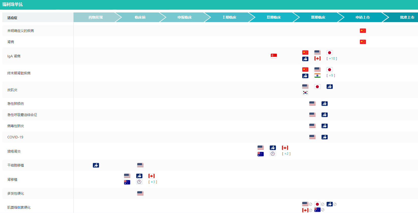 Ravulizumab不同适应症全球研发进度查询(部分)