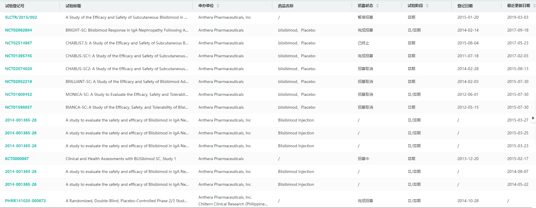Blisibimod全球临床试验信息查询