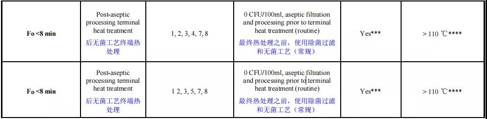 F0<8的热处理程序不做过多讨论。其实参照PDA报告及日本的指南,完全可以在测定污染菌D值及定期监控的基础上,用F0<8的热处理程序达到无菌保证水平<10-6的效果。只要能充分证明产品不能耐受终端灭菌,目前CDE也并不禁止F0<8的热处理程序。有技术实力的企业完全可以尝试测定污染菌的D值,并依照国外指南设计热处理程序。申报上去预计审评老师会无视,但或许对企业的印象分会增加。