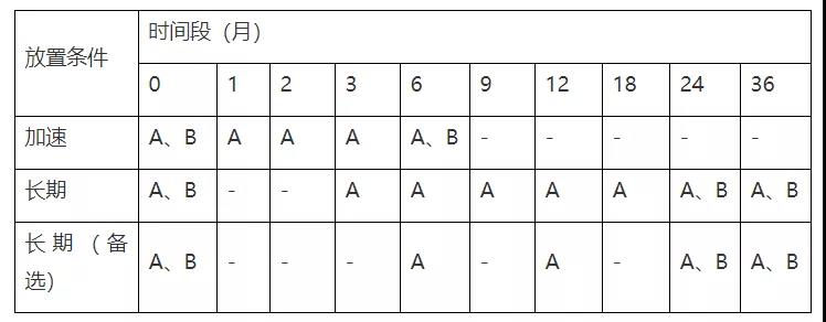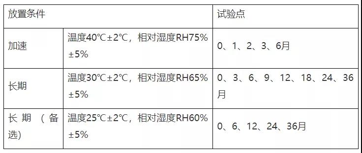 稳定性试验点时间表产品拟国内上市,我国总体属于亚热带(Ⅱ),部分地区属于湿热带(Ⅳ A),长期试验采用30℃/65%RH,25℃/60%RH作为长期备选研究(或与之前稳定性研究数据的对比研究)。